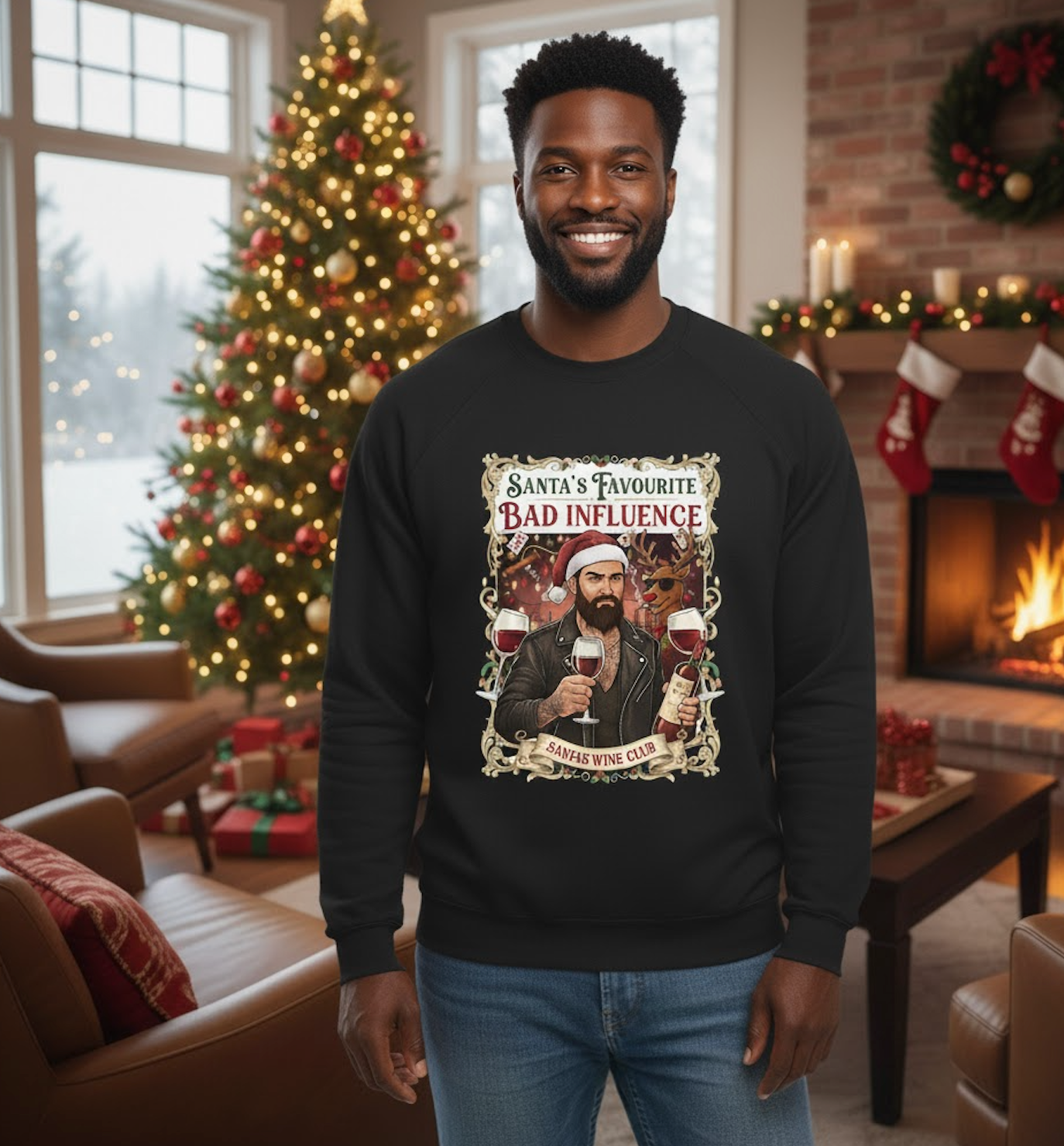 Raise a glass to cozy holiday style with theSanta’s Favourite Bad Influence sweatshirt! Crafted from soft, premium cotton-blend fleece, it delivers warmth, comfort, and just the right touch of festive mischief.Perfect for holiday gatherings, wine nights, or gifting your favorite partner-in-crime, this sweatshirt makes every toast feel extra merry.